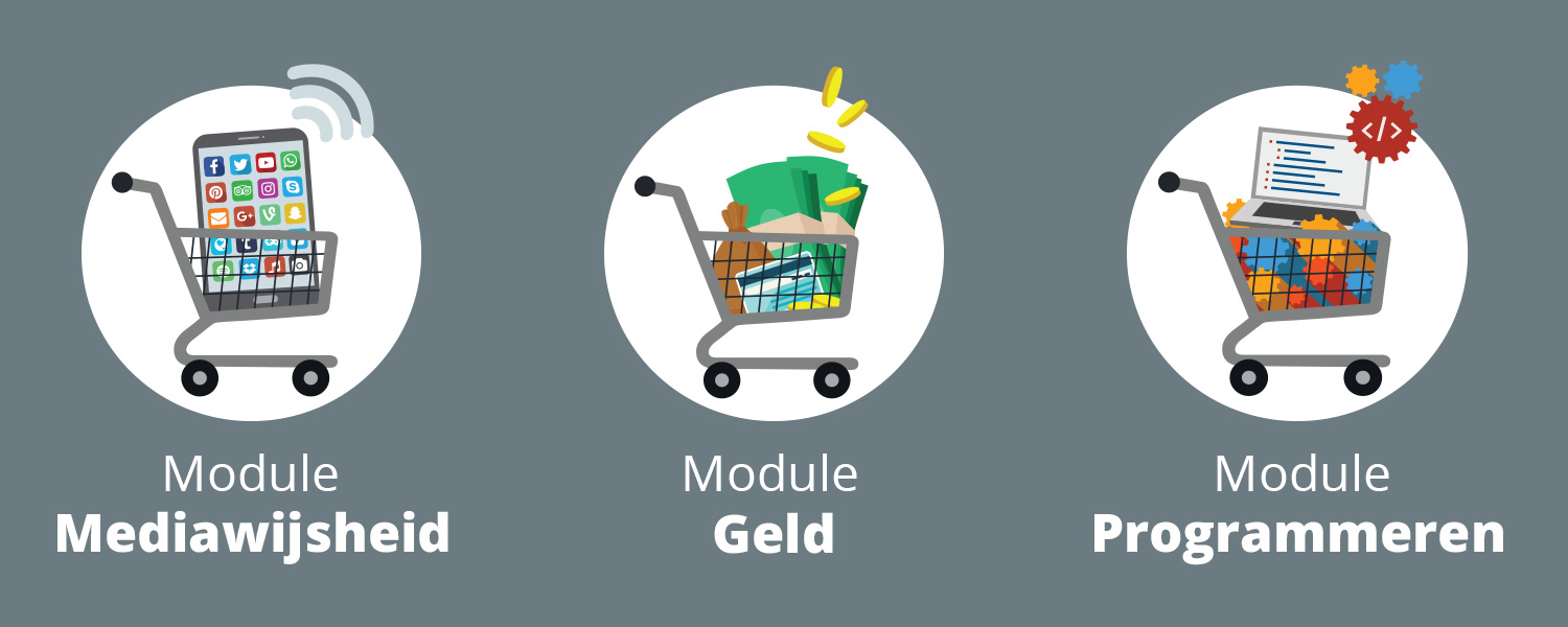• Er zijn drie optionele verdiepingsmodules: “Mediawijsheid”, “Omgaan met geld” en “Programmeren”.